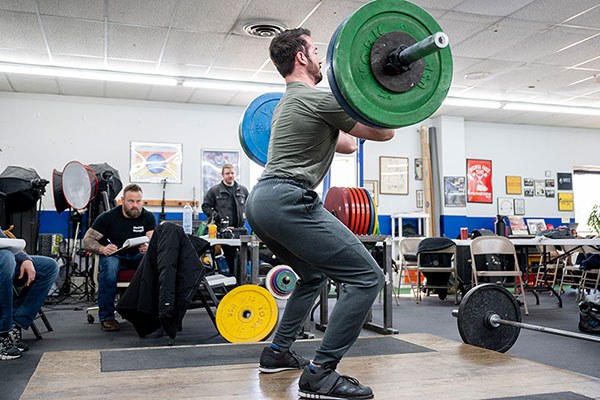 first set of deadlifts at 585. “Saves time,” he said, because he