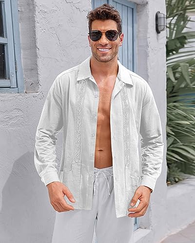 Cuban Guayabera Shirts Long Sleeve Matching: Suitable for spring, summer, or autumn, men cuban guayabera shirts can be paired with dress pants, slacks, chinos, or jeans.