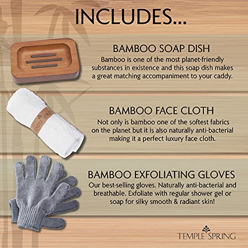 BAMBOO GLOVES, FACE CLOTH & SOAP DISH – Here at Temple Spring we love to provide that little bit extra so with each and every purchase we will be able to include a matching Bamboo Soap Dish, 100% Bamboo Face Cloth and Exfoliating Gloves – for that little extra Luxury.