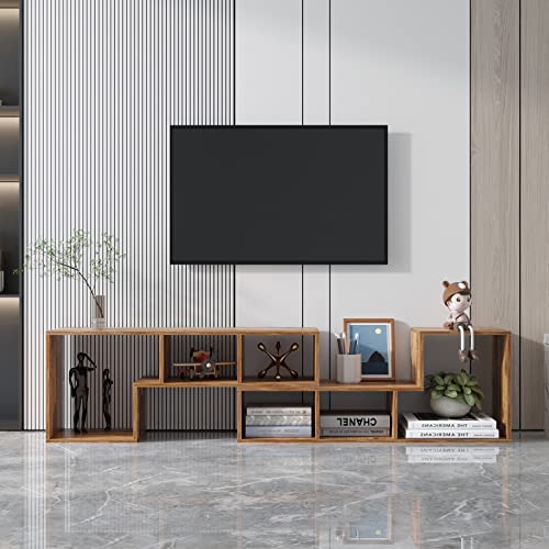 Specification: 2 Pieces Adjustable TV Stand for 32-80 Inch TVs Wood Modern TV Console Table Free-Combination Storage Bookcase Shelf for Study Living Room Bedroom Reception Room Office Splicing Walnut