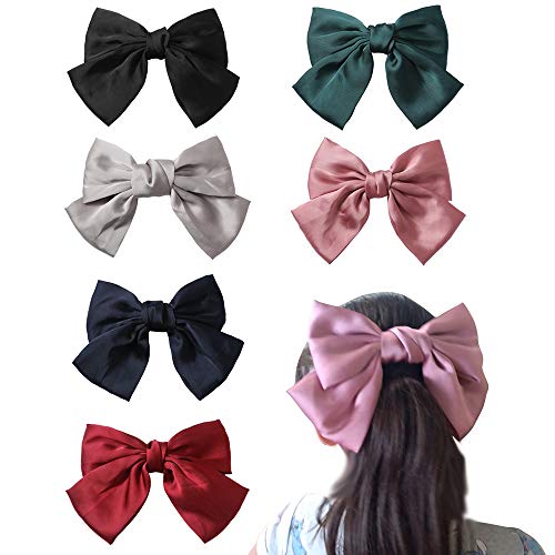 Specification: Big Hair Bow Clips Satin Silk Thick Hair Barrettes French Style Hair Accessories 6PCS for Girls Women Ladies by JIAHANG