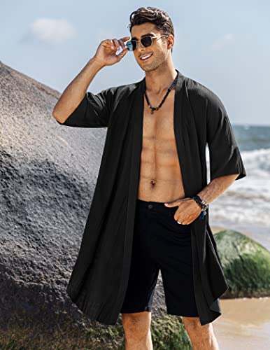 COOFANDY Men’s Ruffle Shawl Collar Cotton Cardigan Long Kimono Jackets Open Front Drape Cape Coat