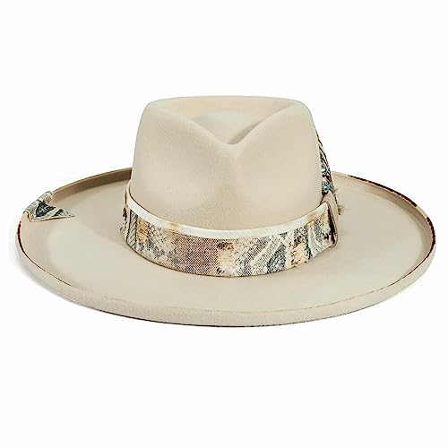 Fedora Hats for Women Vintage Wide Brim Hat Western 100% Australian Wool Pencil Brim Felt Panama Hat