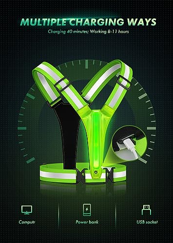 Specification: Fokia Kunbio LED Reflective Running Vest Gear,Light Up Vest Runners Night Walking USB Rechargeable,Up to 11hrs Light with Adjustable Waist/Shoulder for Women Men Kids