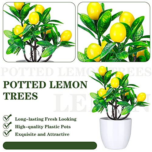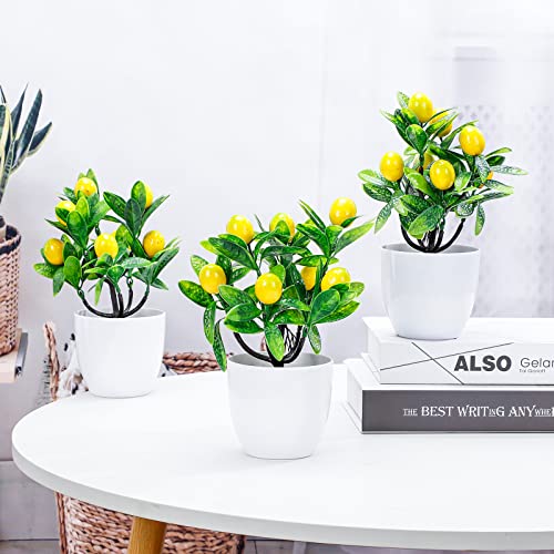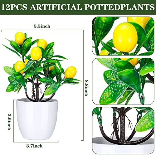 Jutom 12 Pcs Artificial Mini Potted Plants Faux Artificial Lemon Tree 8.8 Inches Small Fake Lemon Tree Plant Fruit with White Plastic Pot for Home Bathroom Kitchen Table Desk Office Decor