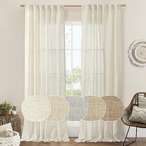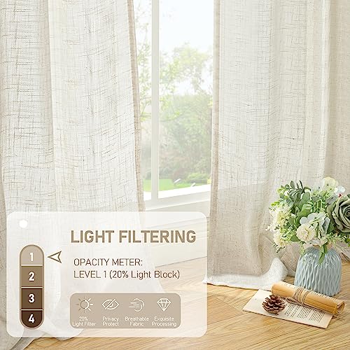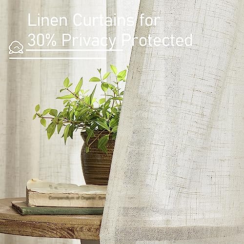 LAMIT Natural Linen Curtains for Living Room 84 inch Length 2 Panels, Ivory Cream Light Filtering Semi Sheer Panels Back Tab and Rod Pocket Boho Neutral Drapes for Bedroom/Farmhouse, 52 x 84 Inch
