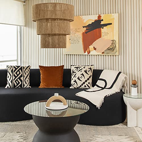 NATIVA LIVING – IZAMAL Natural Jute Pendant Light Fixture – Semi Flush Mount – Contemporary Art Deco for Kitchen, Living Room, Bedroom, Outdoors. (Black Cable)