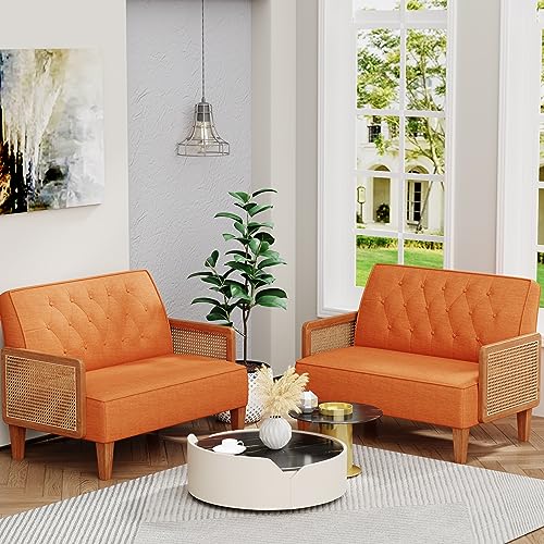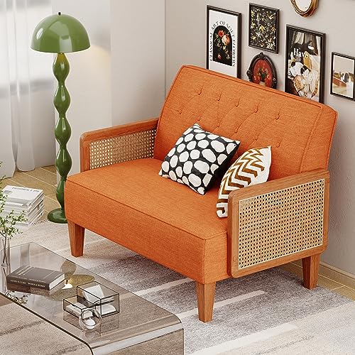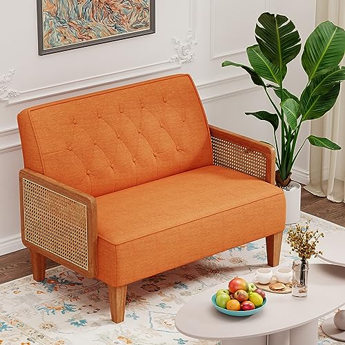 Specification: POINTANT Love Seat Settee Mini Couch Upholstered Sofa with Natural Rattan Armrest Backrest Button Tufted Buckle Couch Banquette Bench Loveseat for Dining Living Room Bedroom Orange