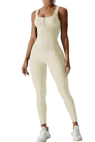 QINSEN Womens Zip Front Square Neck Tank Top Sleeveless Jumpsuit Long Pants Yoga Unitard Rommpers