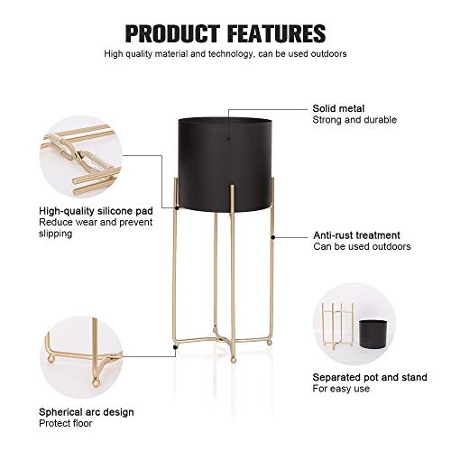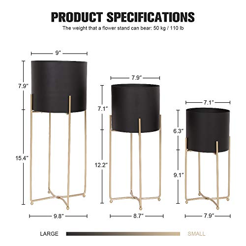 Specification: Sinolodo Mid Century Planter with Gold Plant Stand, 3 pcs Modern Planters for Indoor Plants, Metal Floor Planter Set with Foldable Stand(Pack of 3)
