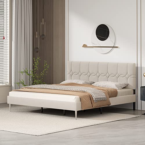 WUDADAO Upholstered Platform Bed Frame/Modern Design/Easy to Assemble/No Box Spring Needed (Beige, King (U.S. Standard))